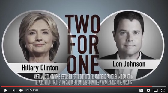 WASHINGTON – – The American Action Network (@AAN) today released the ad “Two For One” against liberal Lon Johnson in Michigan’s 1st congressional district race. The ad spotlights how Lon Johnson and Hillary Clinton are one and the same on self-serving political games and Obamacare.